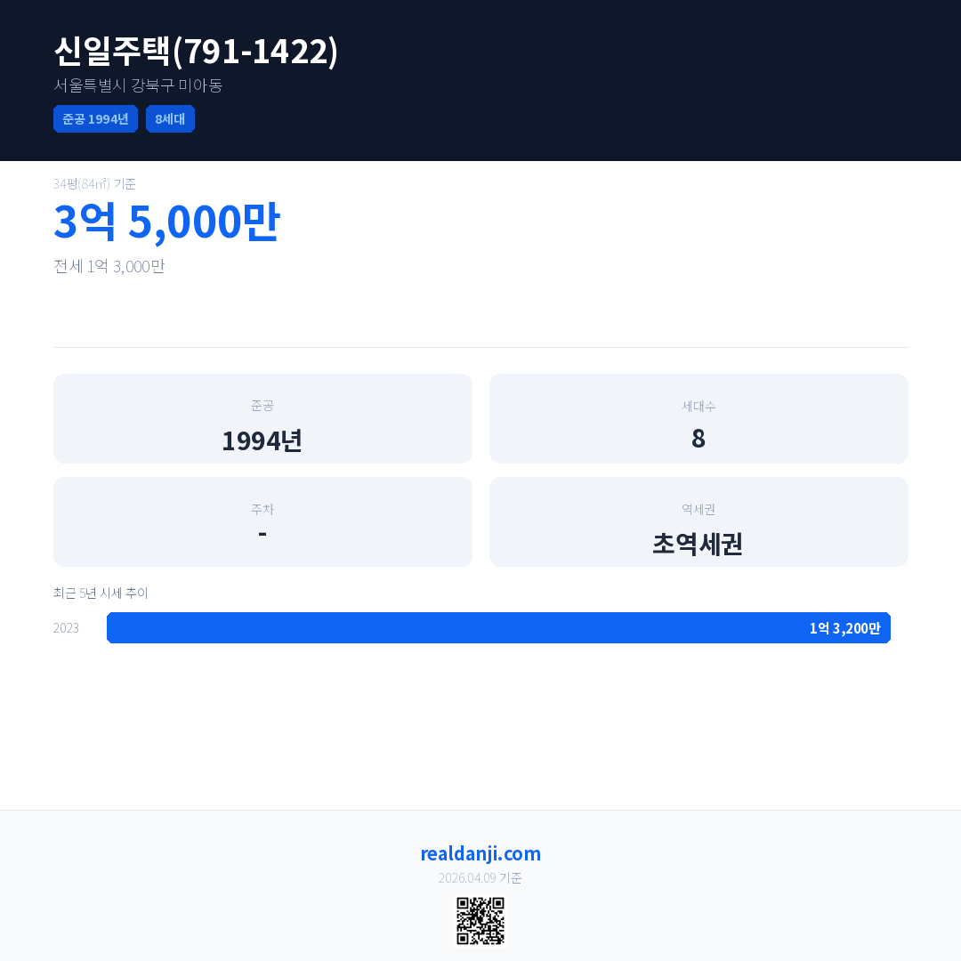신일주택(791-1422) 최근 거래가는 9,200만입니다. (2026-04)