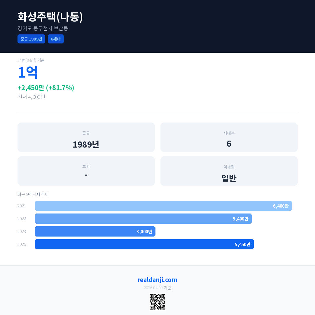 화성주택(나동) 최근 거래가는 1억입니다. (2026-03)