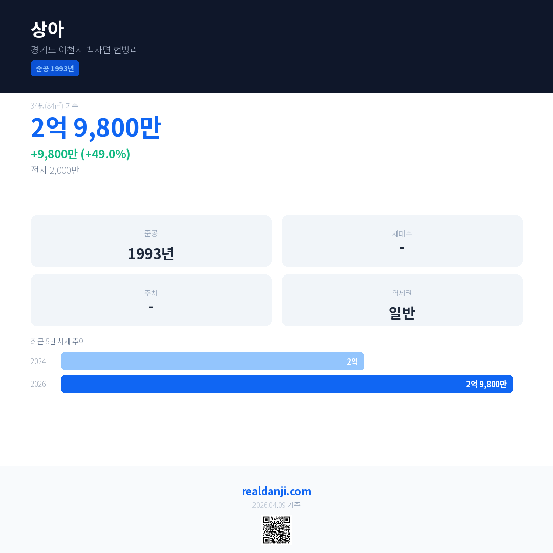 상아 최근 거래가는 2억 9,800만입니다. (2026-03)