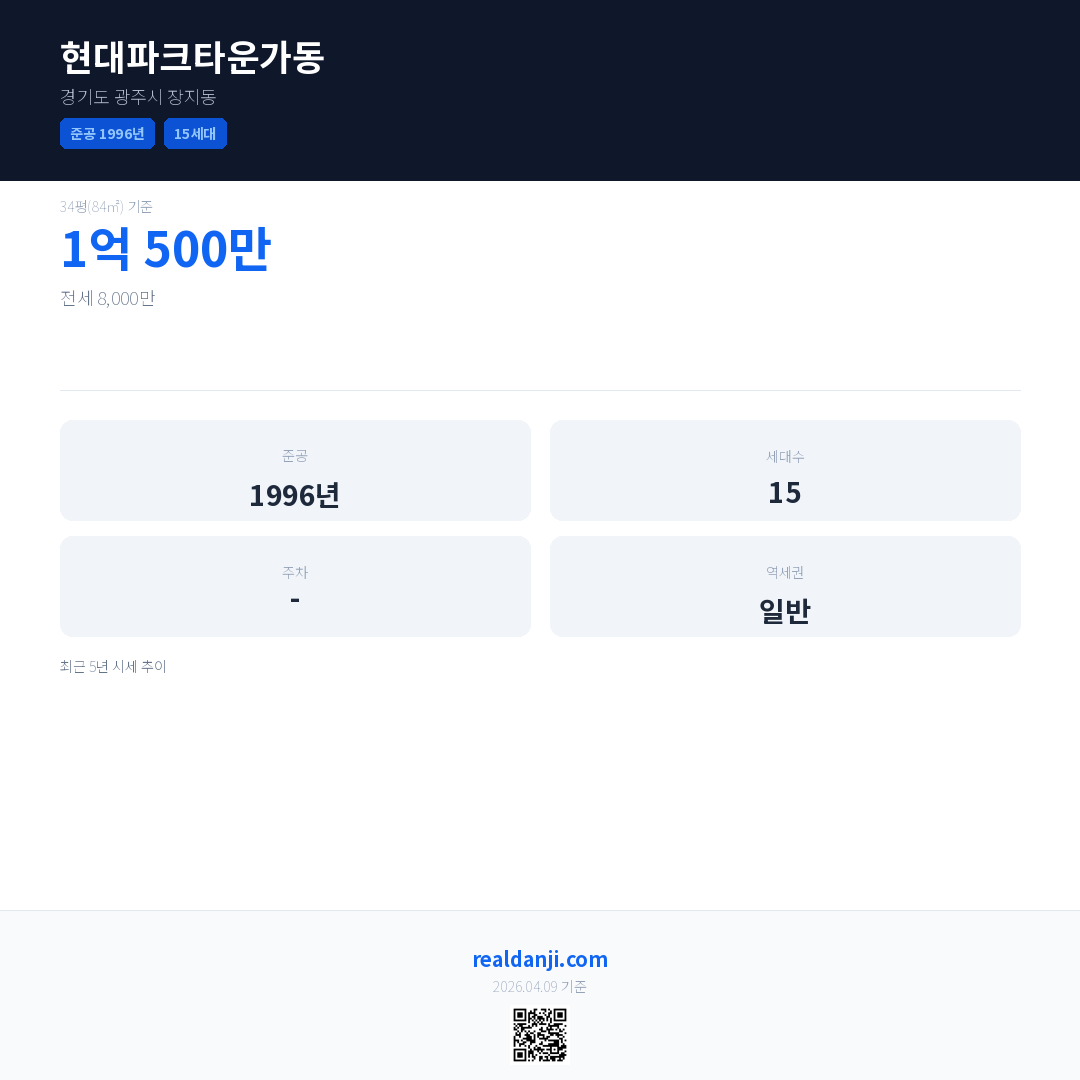 현대파크타운가동은(는) 1996년에 준공되었으며, 현재 30년차입니다. 총 15세대 규모입니다.