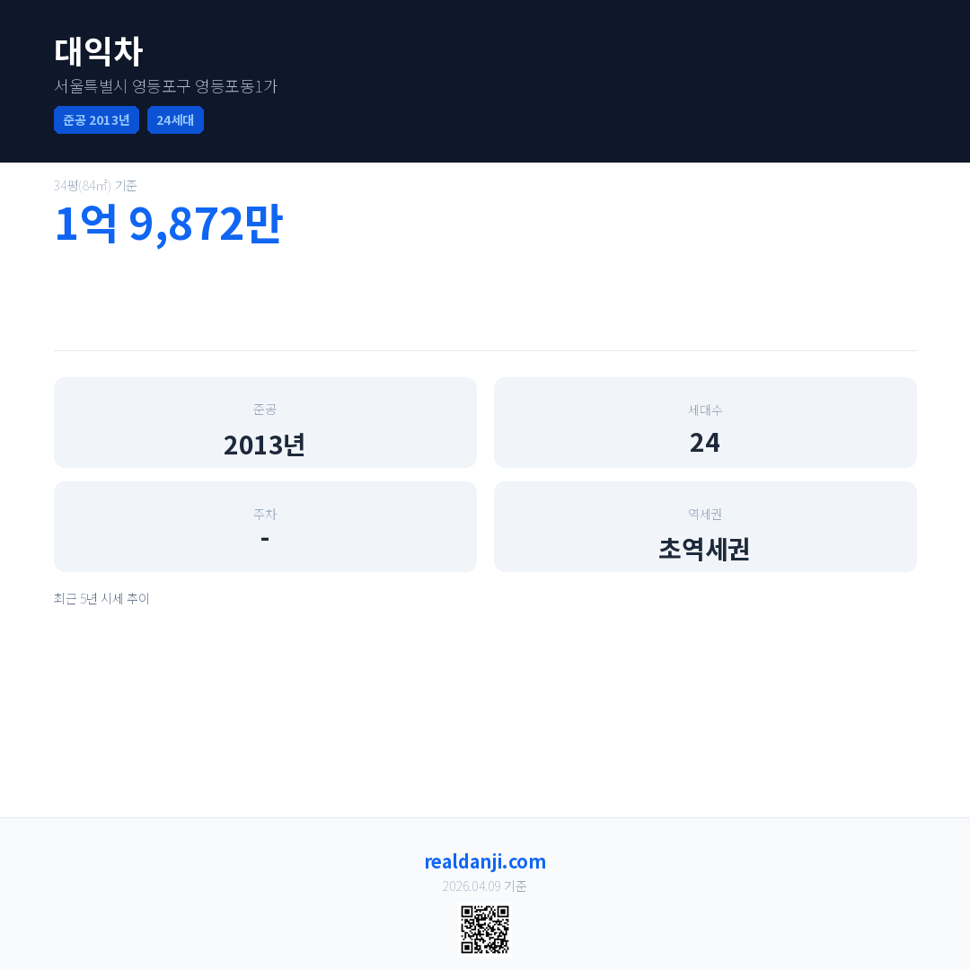 대익차은(는) 2013년에 준공되었으며, 현재 13년차입니다. 총 24세대 규모입니다.