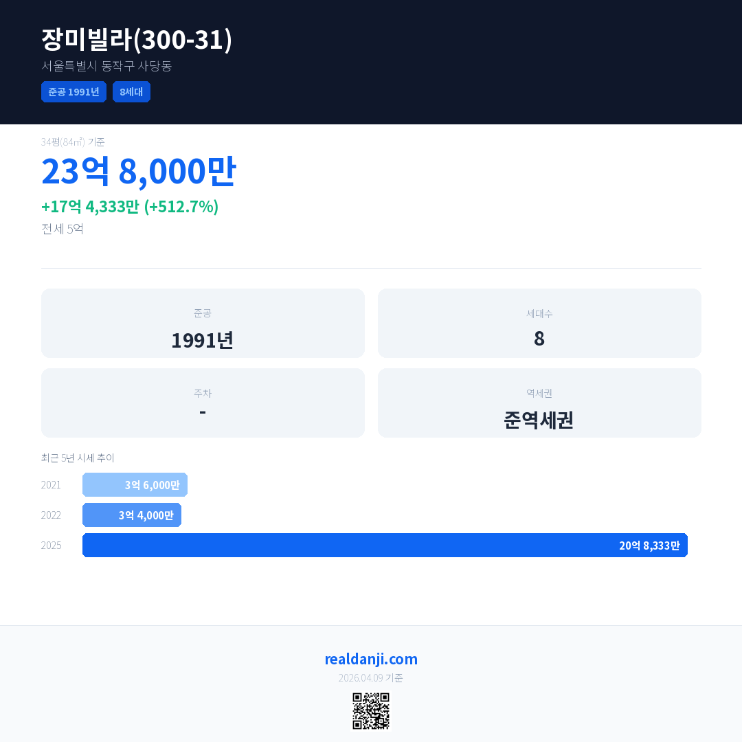 장미빌라(300-31) 최근 거래가는 23억 8,000만입니다. (2025-11)