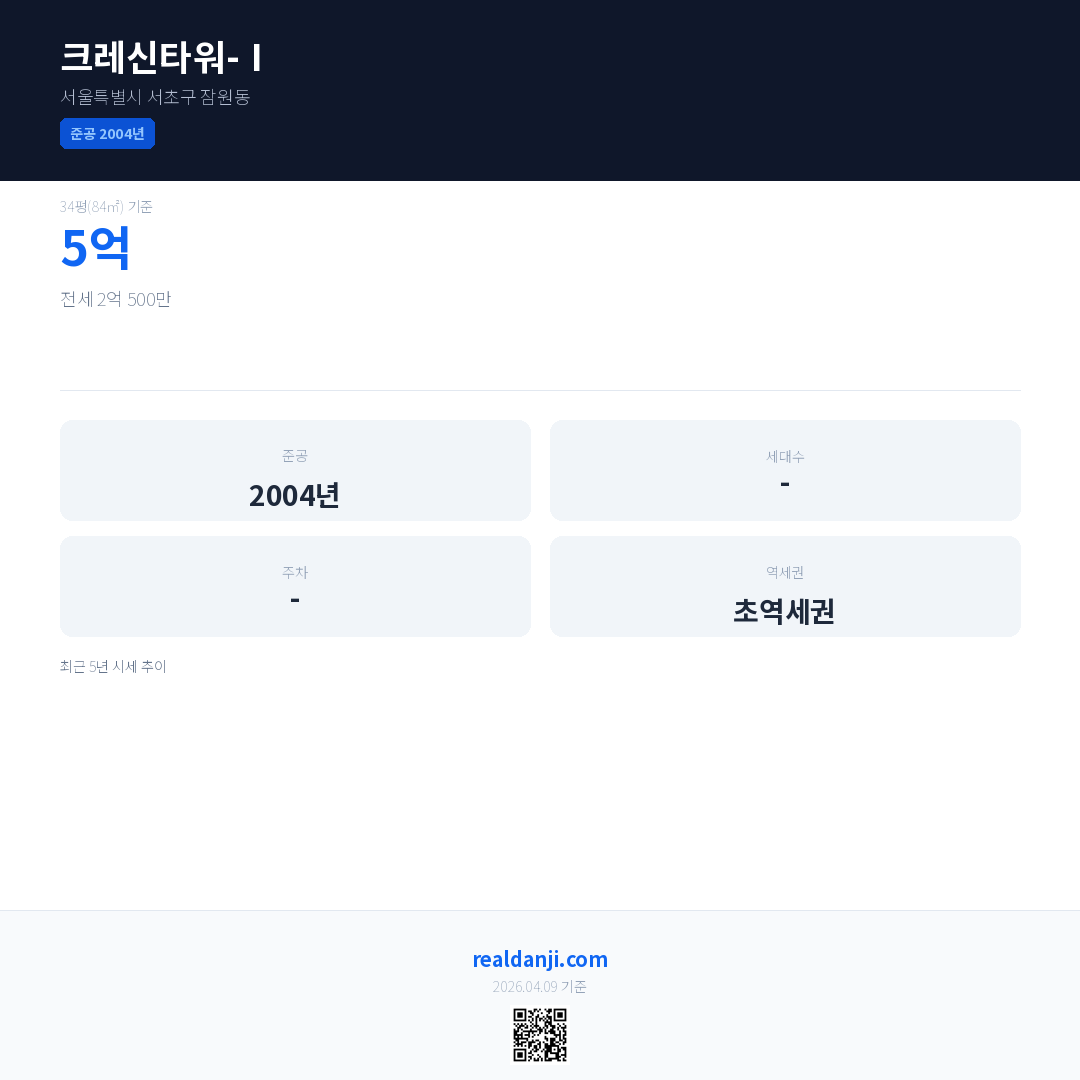 크레신타워-Ⅰ은(는) 2004년에 준공되었으며, 현재 22년차입니다.