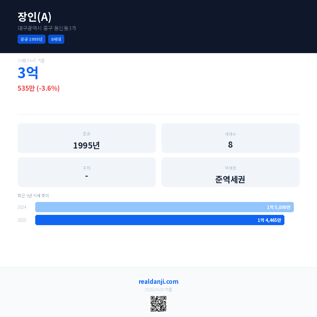 장인(A) 최근 거래가는 3억입니다. (2025-10)