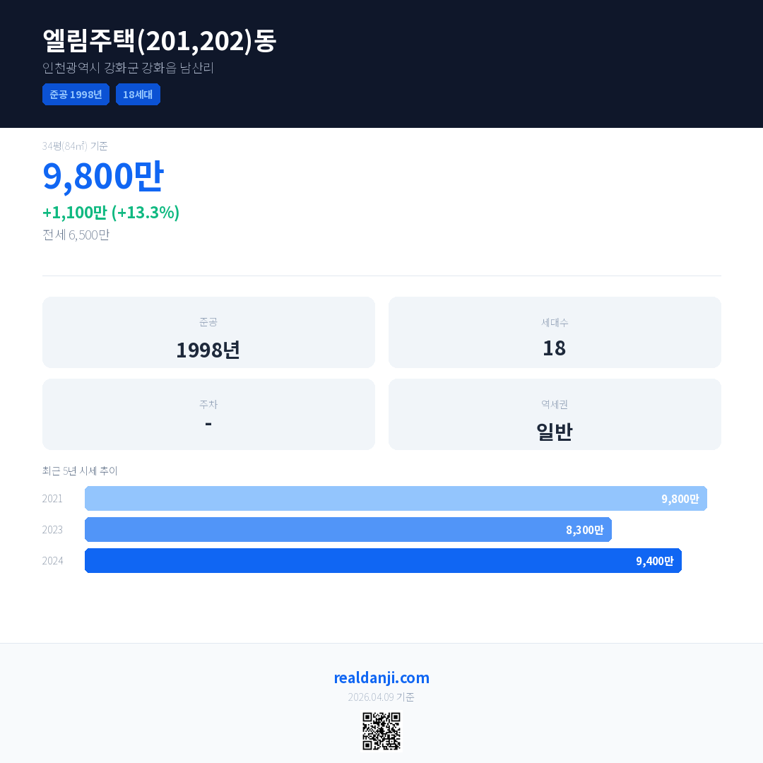 엘림주택(201,202)동 최근 거래가는 9,800만입니다. (2024-11)