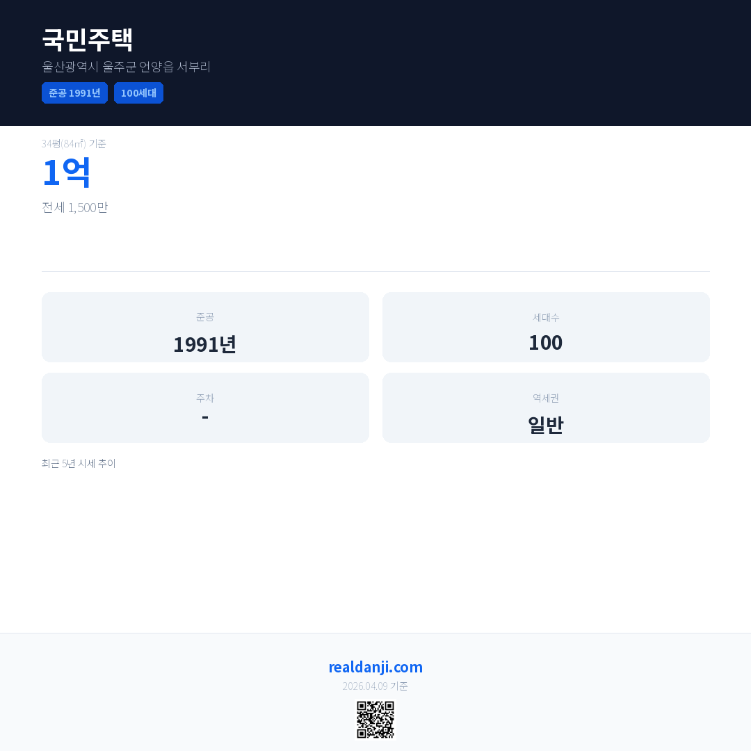 국민주택은(는) 1991년에 준공되었으며, 현재 35년차입니다. 총 100세대 규모입니다.