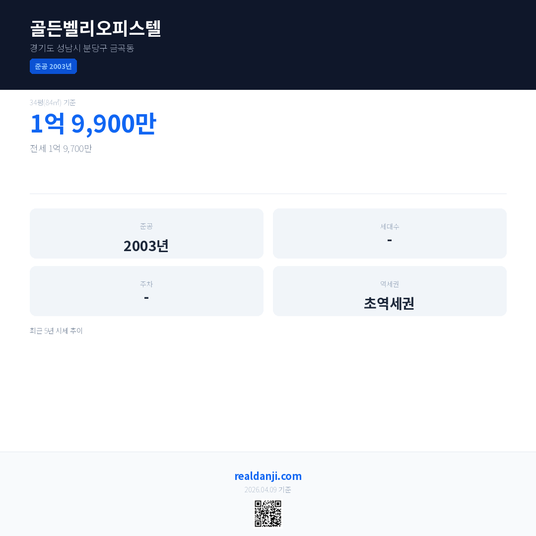 골든벨리오피스텔 최근 거래가는 1억 5,800만입니다. (2026-04)