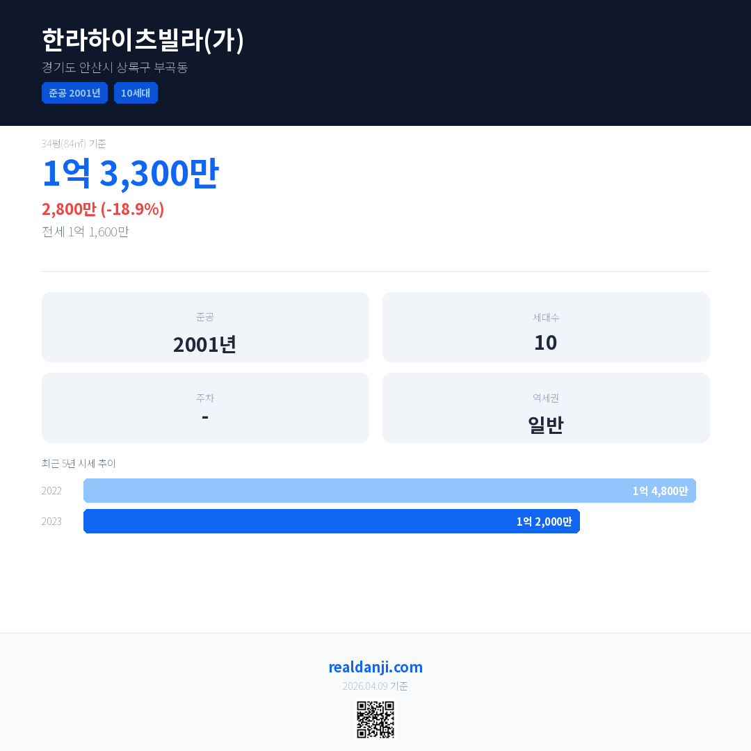 한라하이츠빌라(가) 국민평형 기준 2023년 평균 거래가는 1억 2,000만으로, 전년 대비 18.9% 하락 했습니다.