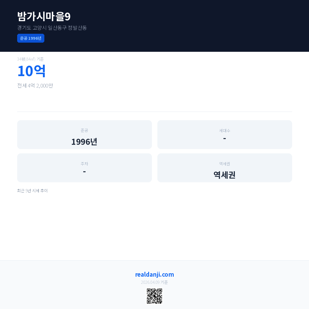 밤가시마을9 최근 거래가는 10억입니다. (2025-10)