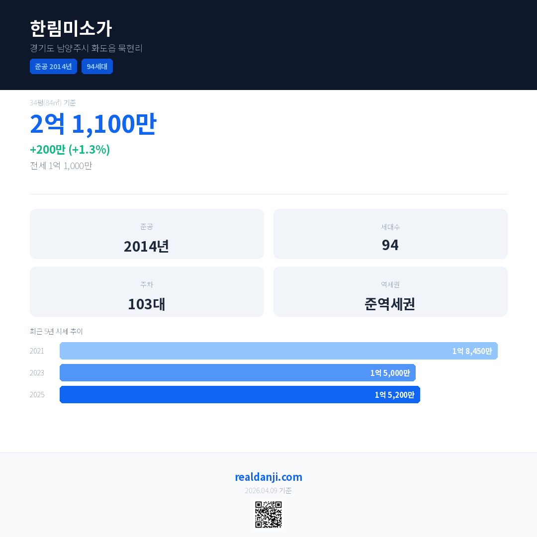 한림미소가 최근 거래가는 2억 1,100만입니다. (2025-07)