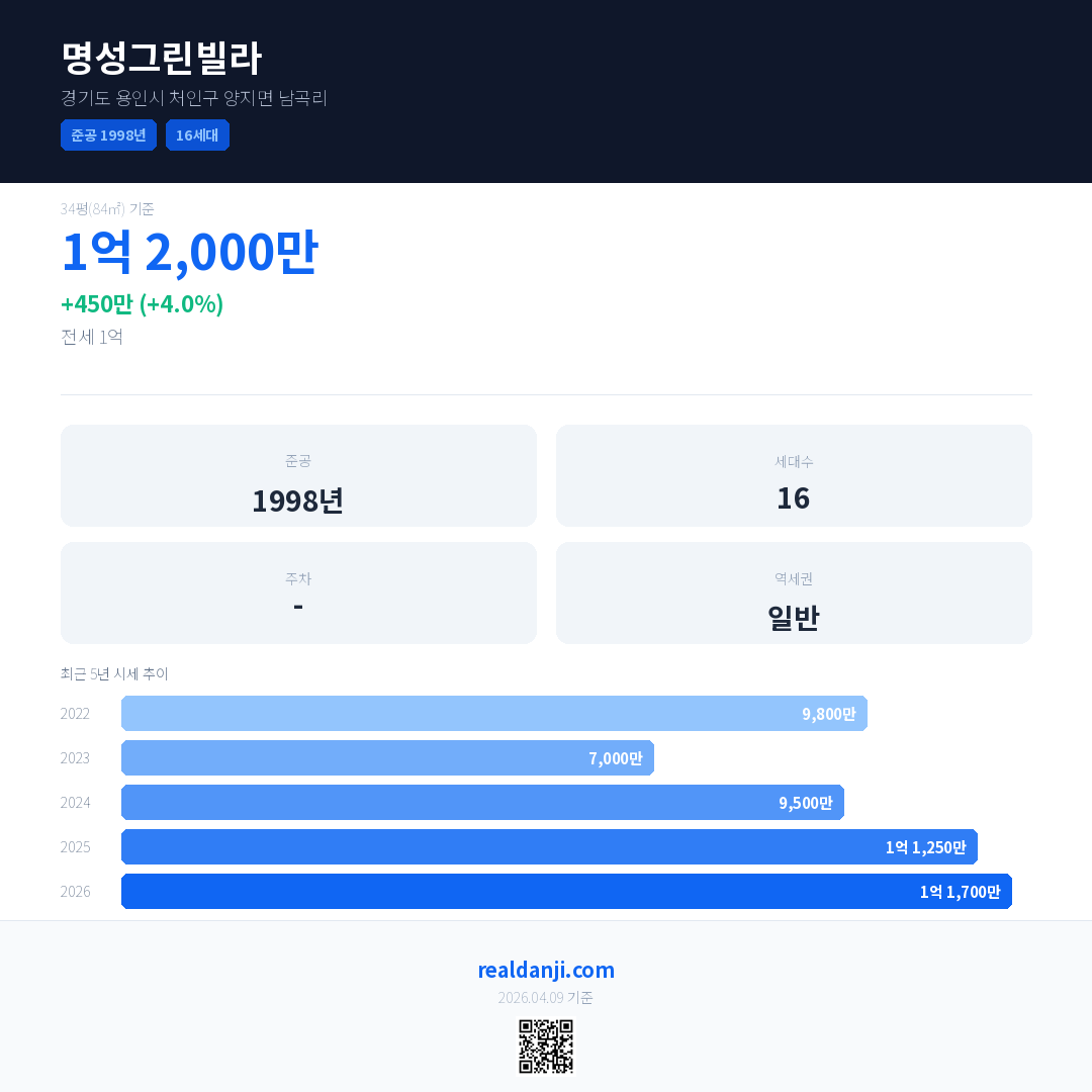 명성그린빌라 최근 거래가는 1억 2,000만입니다. (2026-01)