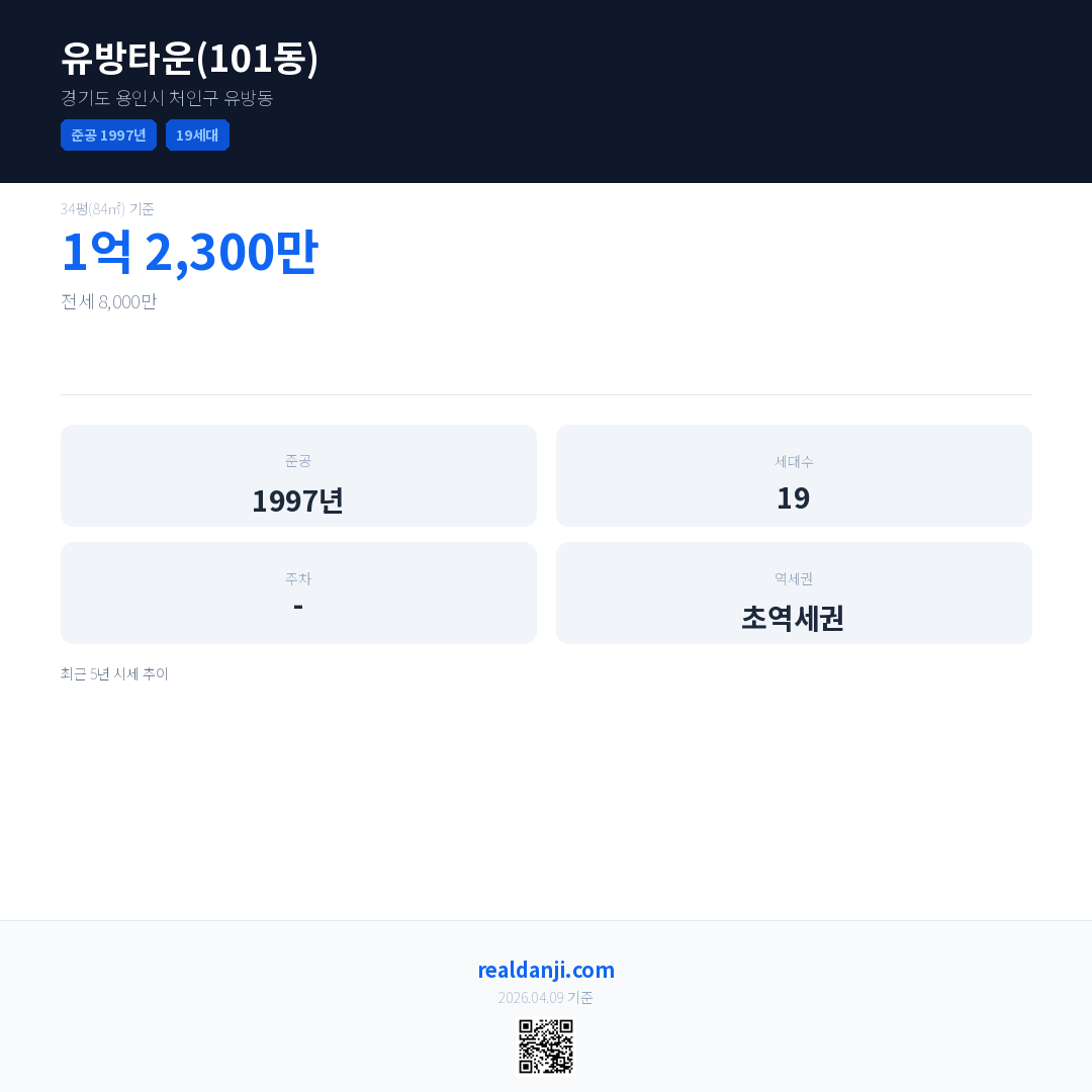 유방타운(101동) 최근 거래가는 1억 2,300만입니다. (2020-02)
