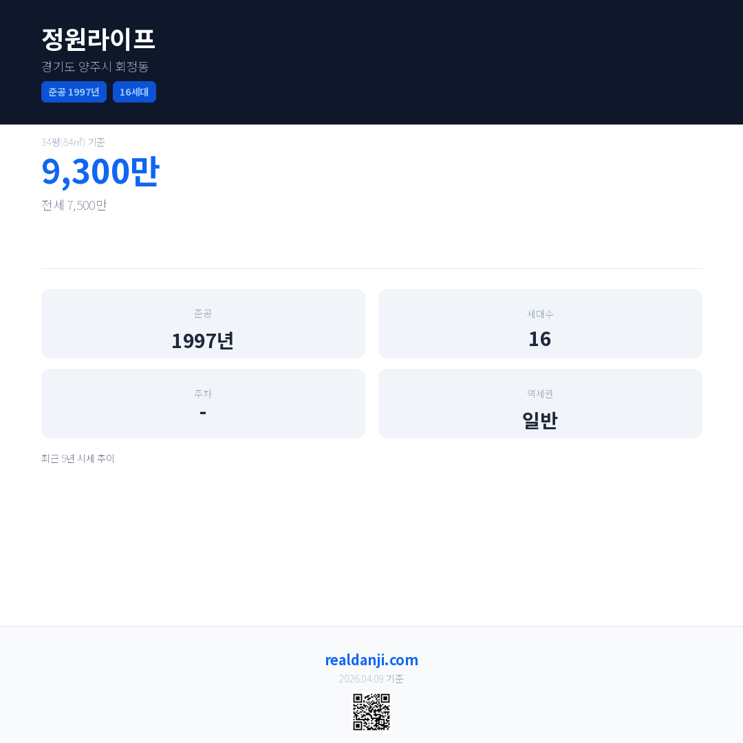 정원라이프 최근 거래가는 9,300만입니다. (2016-11)