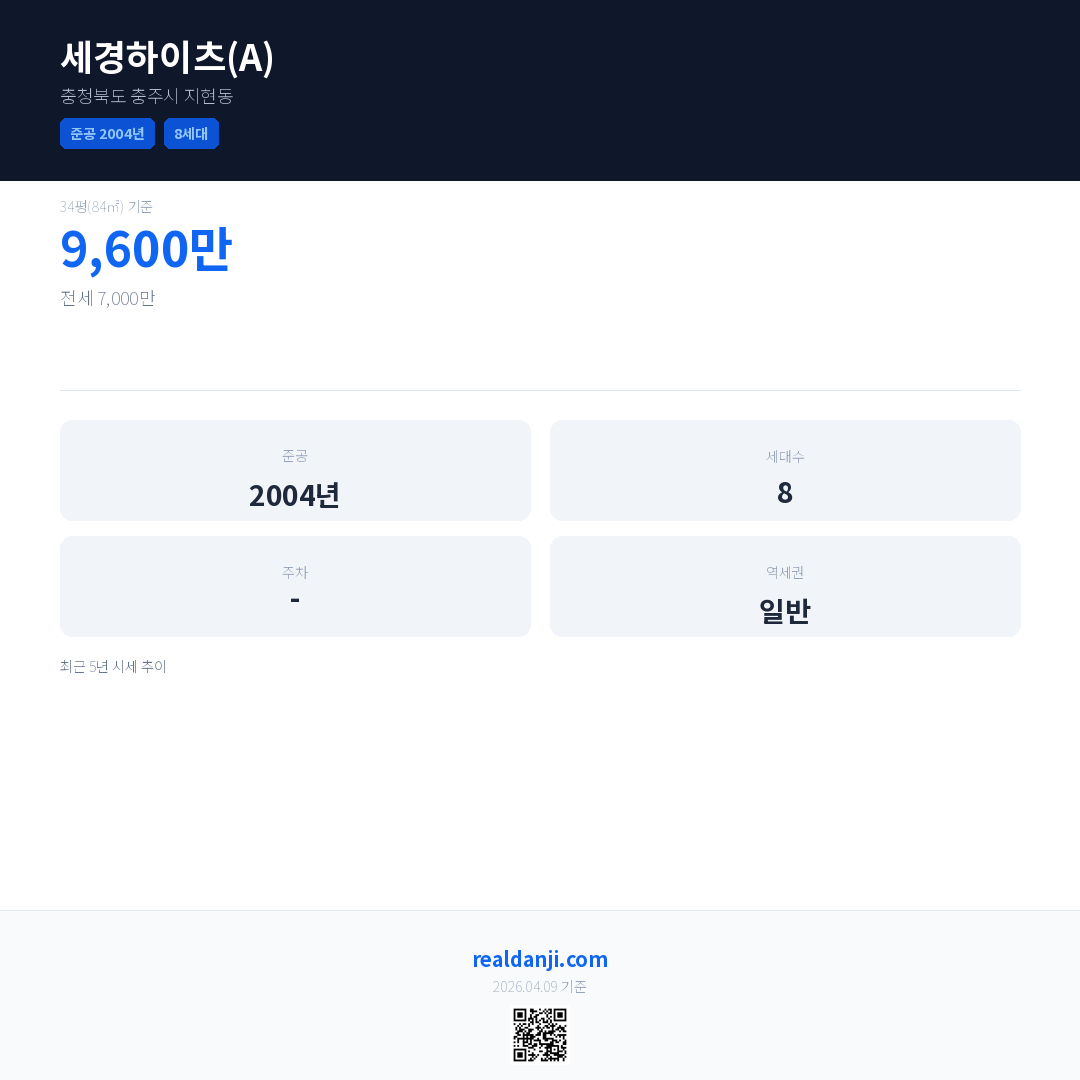 세경하이츠(A) 최근 거래가는 9,600만입니다. (2020-09)