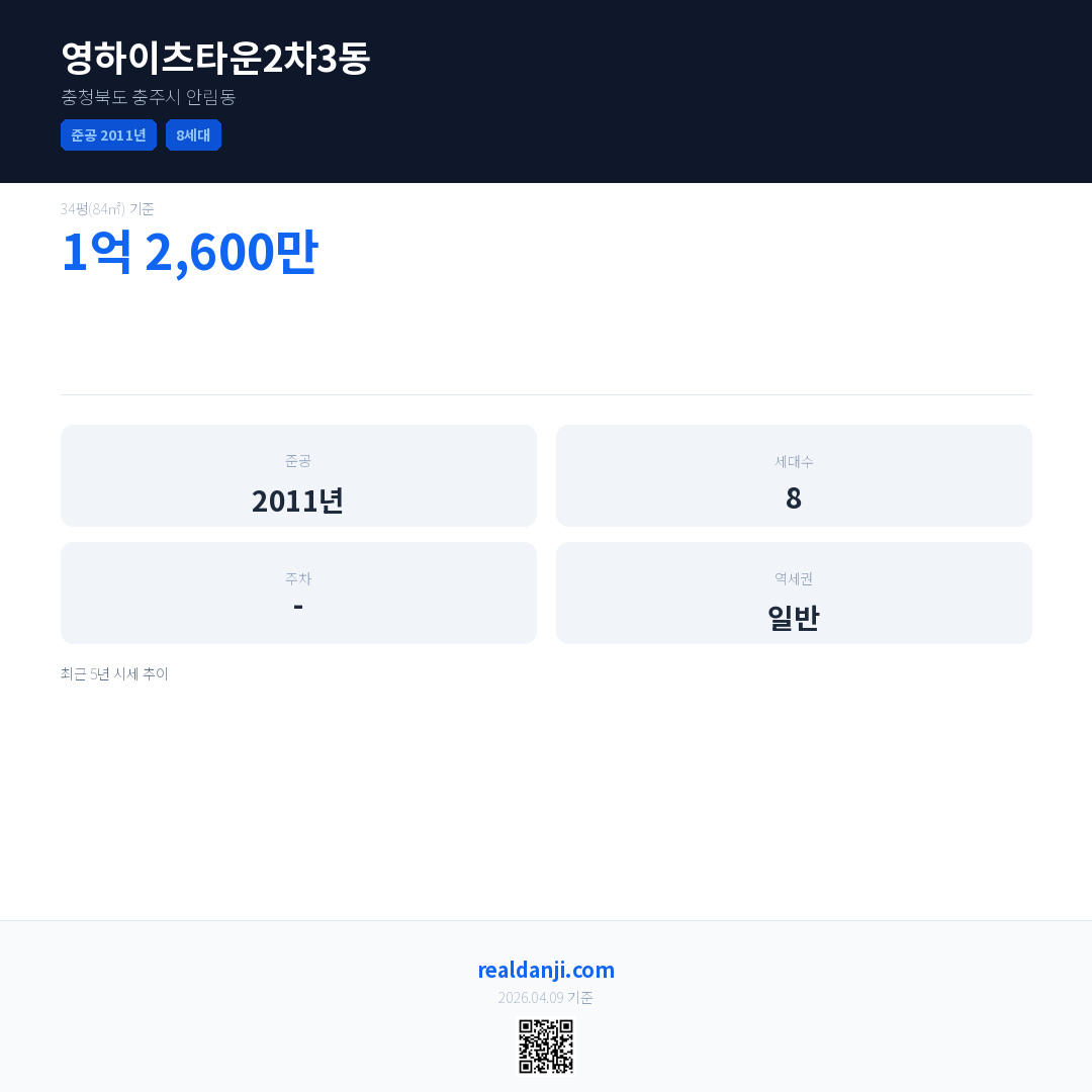 영하이츠타운2차3동은(는) 2011년에 준공되었으며, 현재 15년차입니다. 총 8세대 규모입니다.