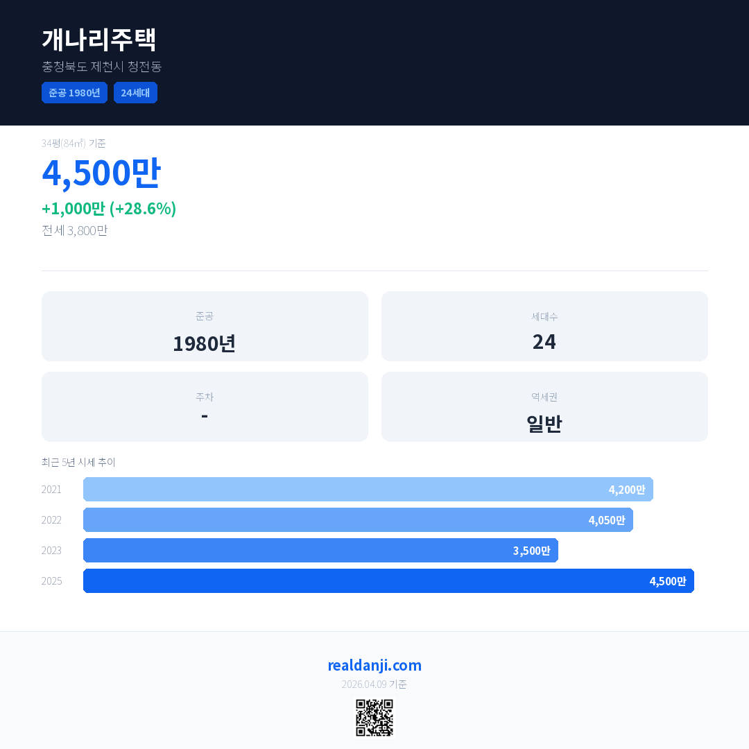 개나리주택 국민평형 기준 2025년 평균 거래가는 4,500만으로, 전년 대비 28.6% 상승 했습니다.