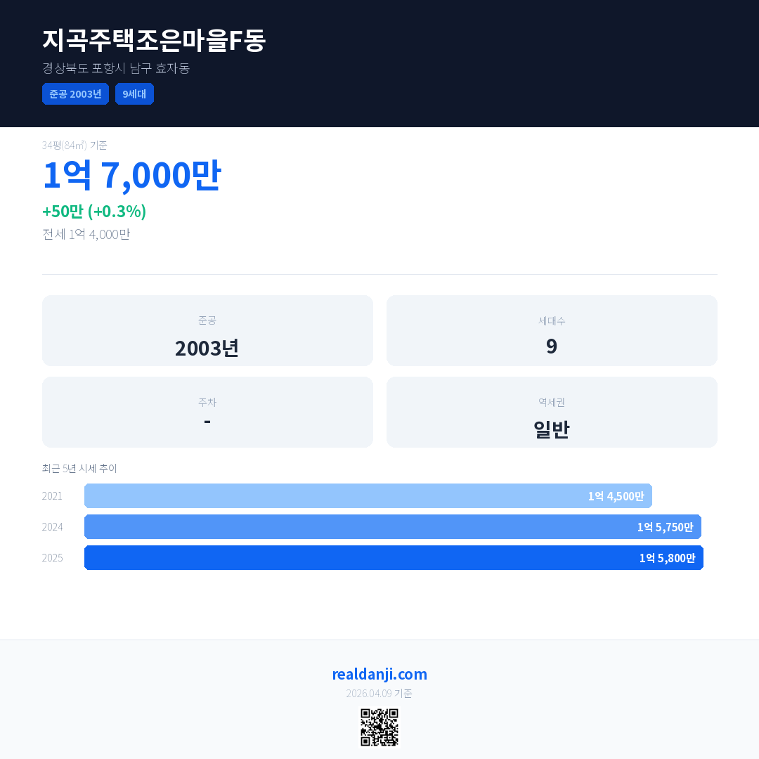 지곡주택조은마을F동 최근 거래가는 1억 7,000만입니다. (2025-10)