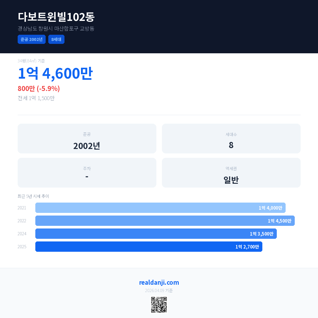 다보트윈빌102동 최근 거래가는 1억 4,600만입니다. (2025-09)