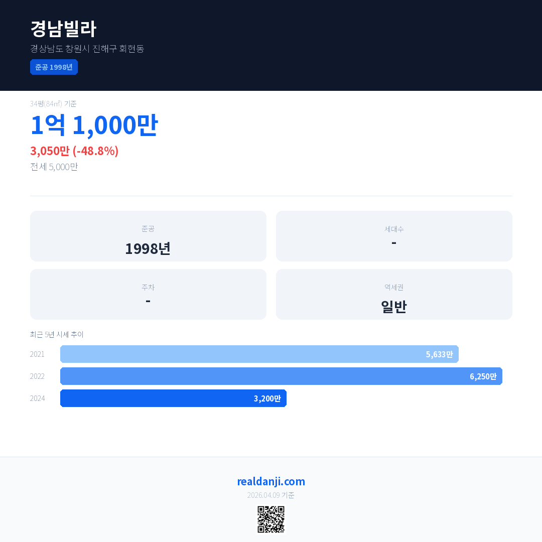 경남빌라 최근 거래가는 6,500만입니다. (2026-04)