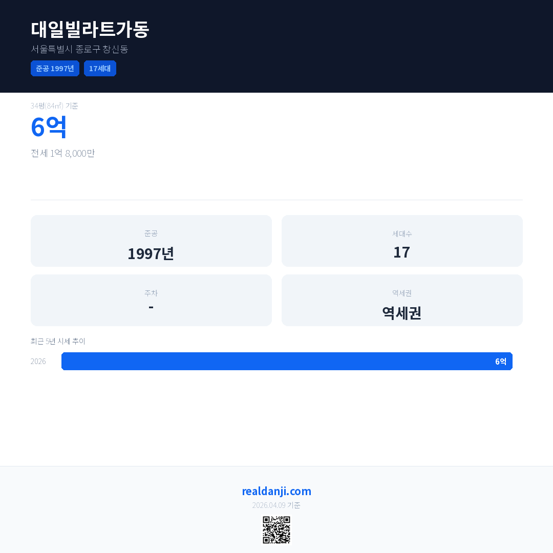 대일빌라트가동 국민평형 기준 2026년 평균 거래가는 6억으로, 전년 대비 201.5% 상승 했습니다.