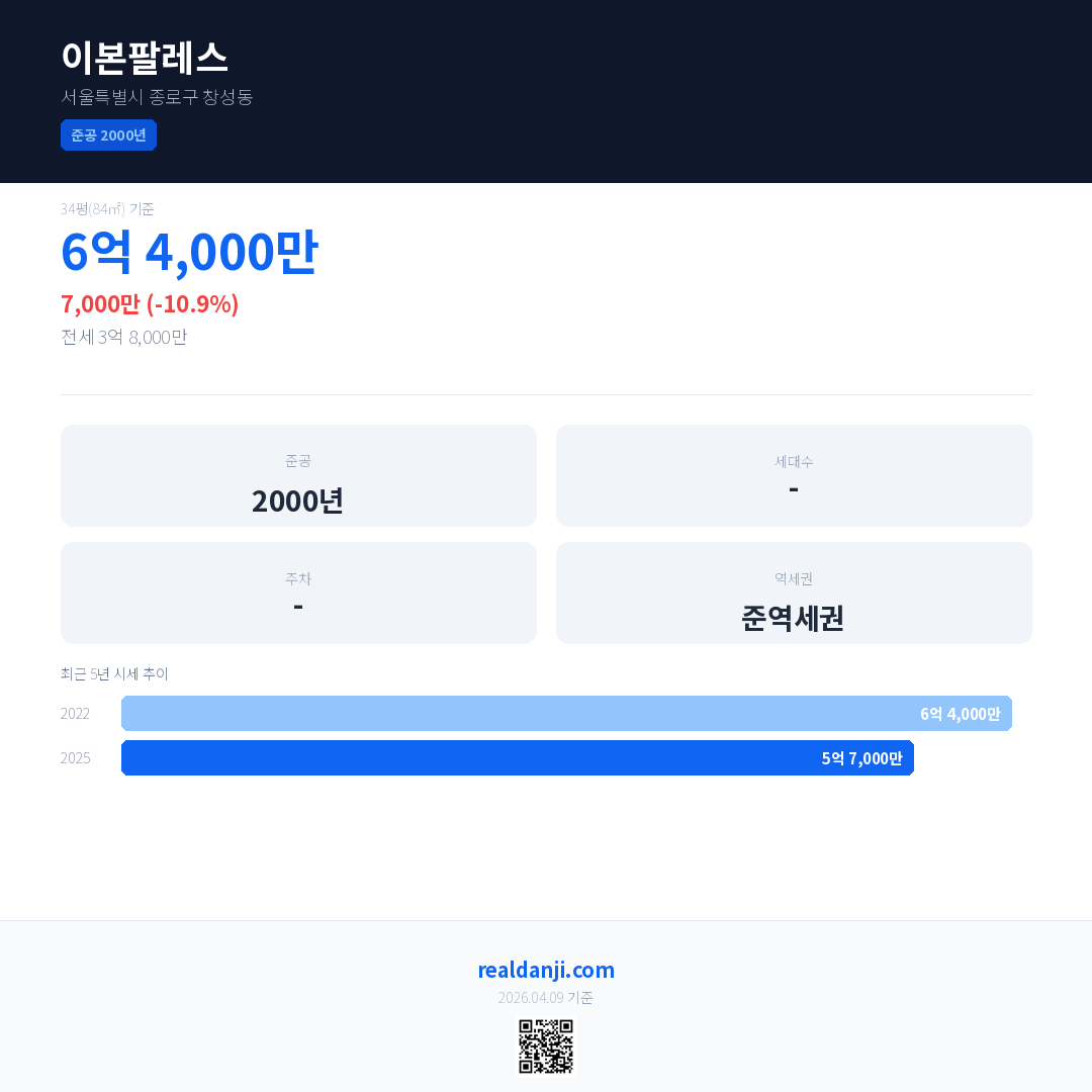 이본팔레스 국민평형 기준 2025년 평균 거래가는 5억 7,000만으로, 전년 대비 10.9% 하락 했습니다.
