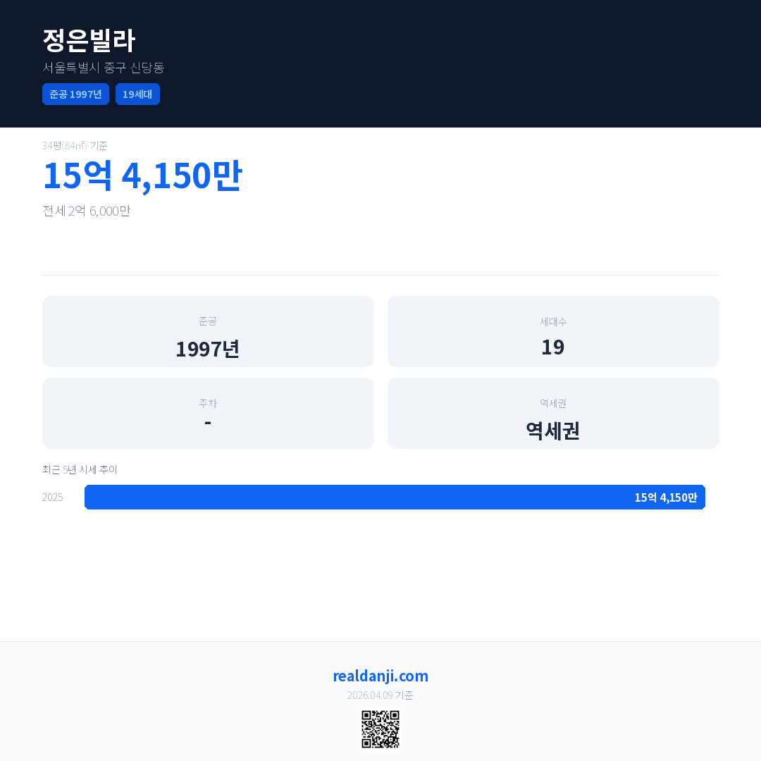 정은빌라 최근 거래가는 15억 4,150만입니다. (2025-09)