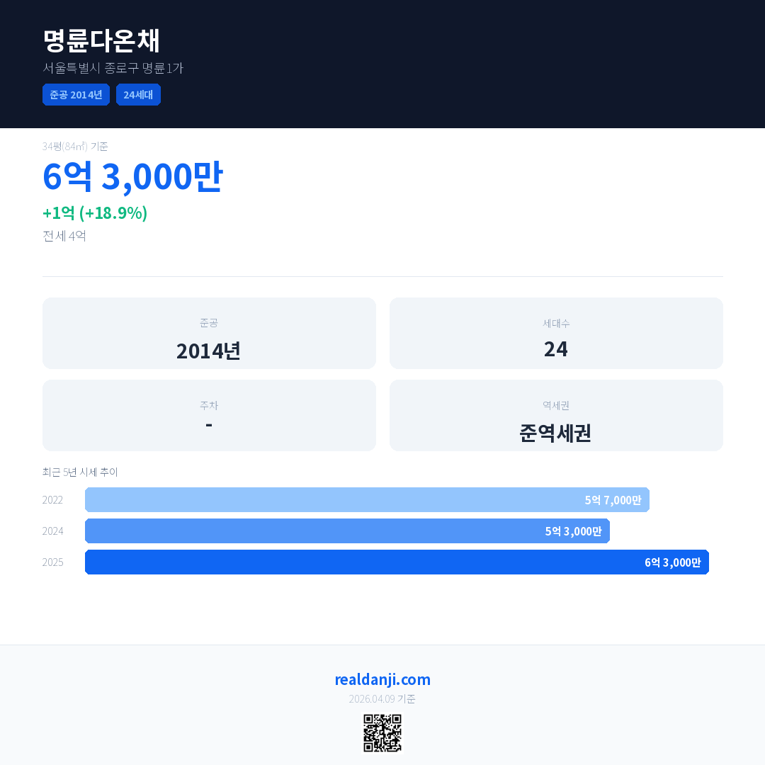 명륜다온채 최근 거래가는 6억 3,000만입니다. (2025-07)