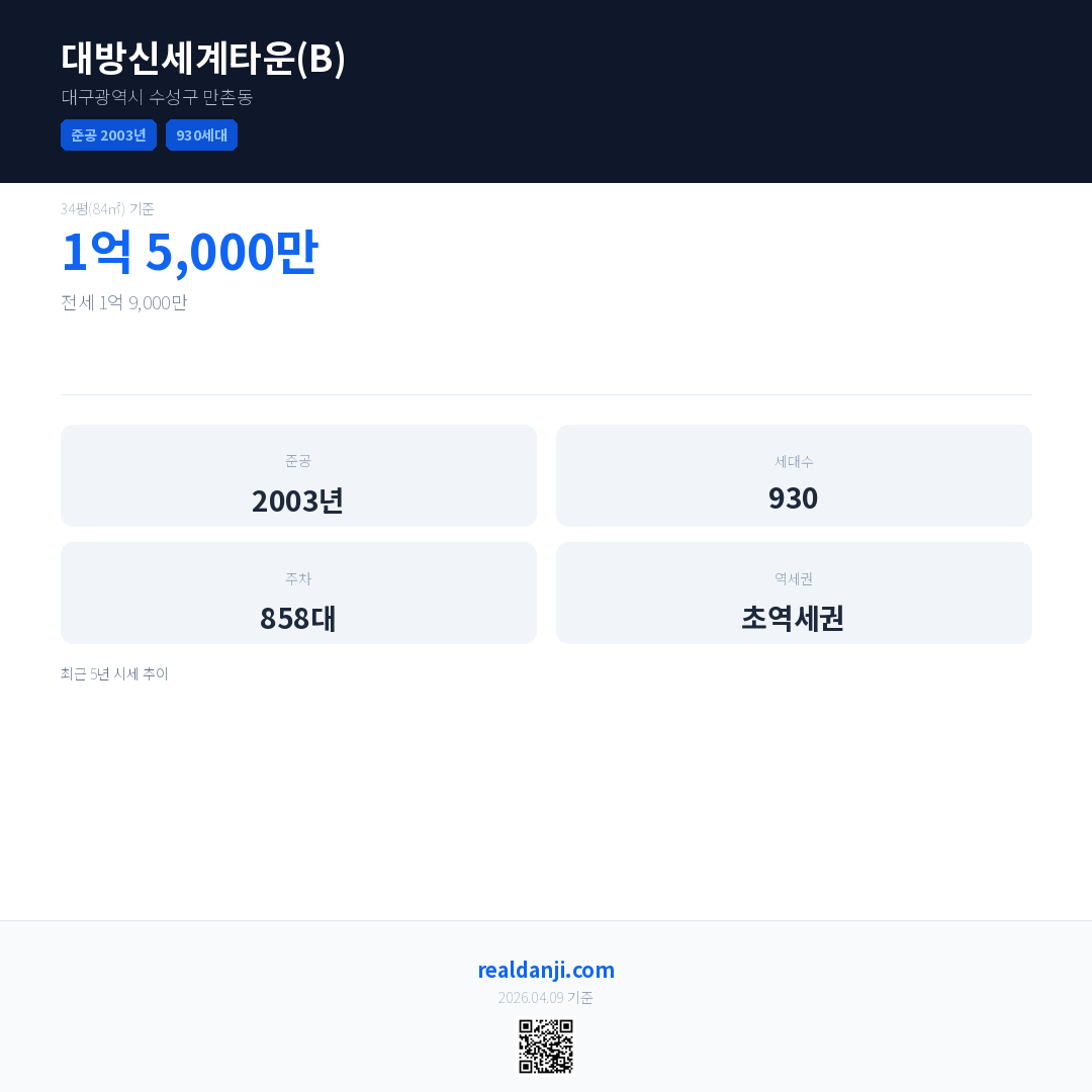 대방신세계타운(B) 최근 거래가는 1억 5,000만입니다. (2015-06)