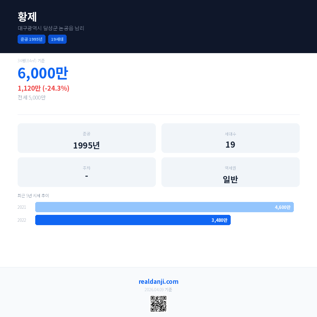 황제 국민평형 기준 2022년 평균 거래가는 3,480만으로, 전년 대비 24.3% 하락 했습니다.
