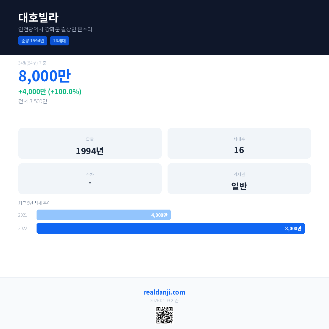 대호빌라 최근 거래가는 8,000만입니다. (2026-01)