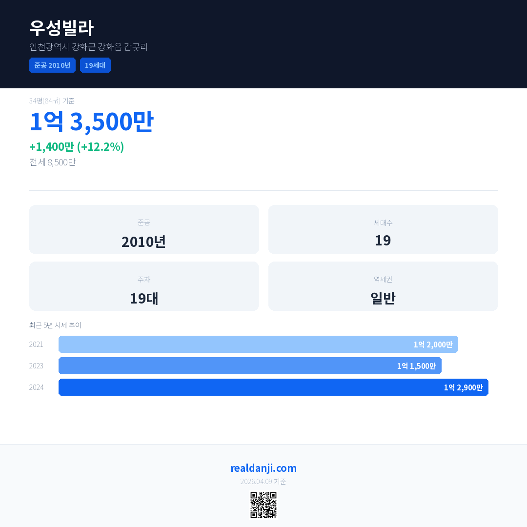 우성빌라 최근 거래가는 1억 3,500만입니다. (2024-03)