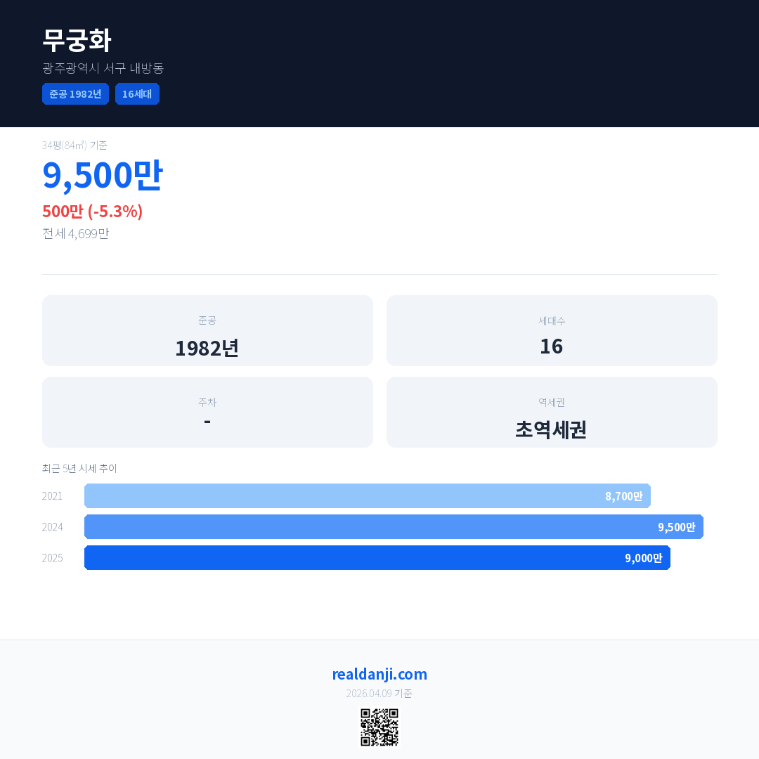 무궁화 최근 거래가는 9,500만입니다. (2025-08)