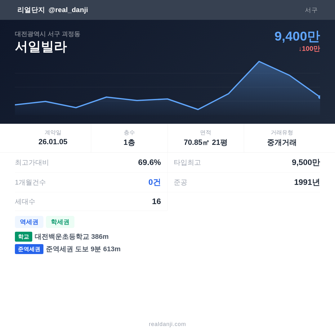 | 2026.01.05 | 71㎡ | 1층 | 9,400만 |