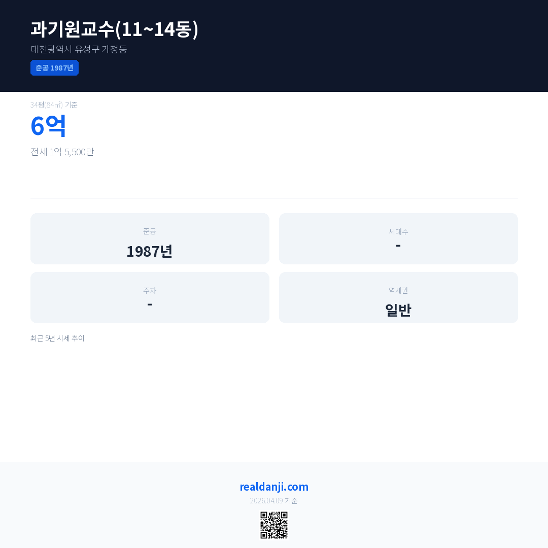 과기원교수(11~14동) 최근 거래가는 6억입니다. (2018-05)