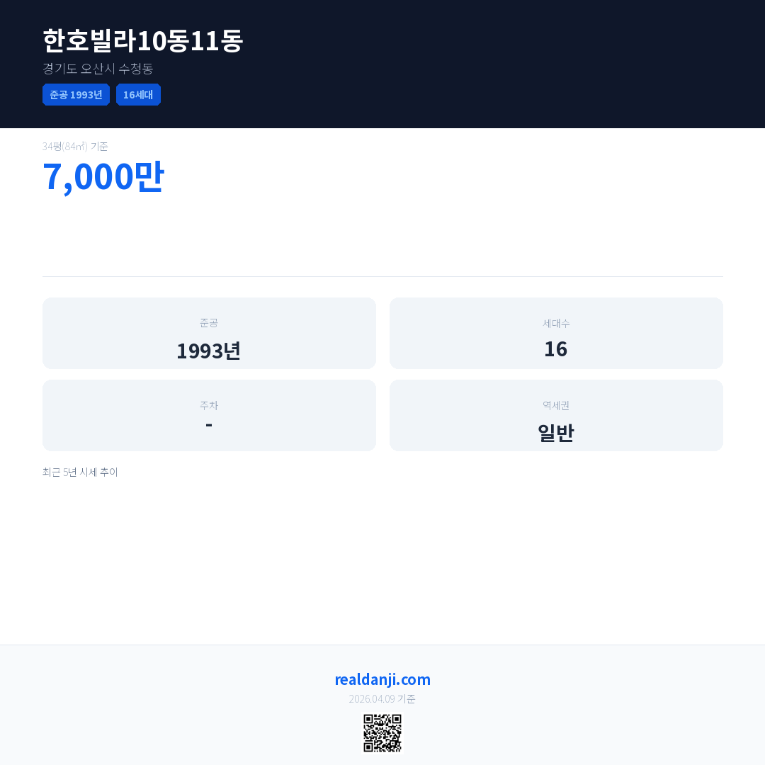 한호빌라10동11동 최근 거래가는 7,000만입니다. (2016-12)