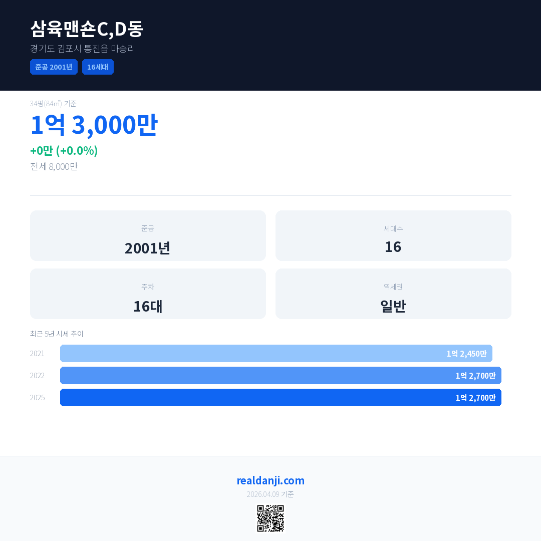 삼육맨숀C,D동 최근 거래가는 1억 3,000만입니다. (2025-11)