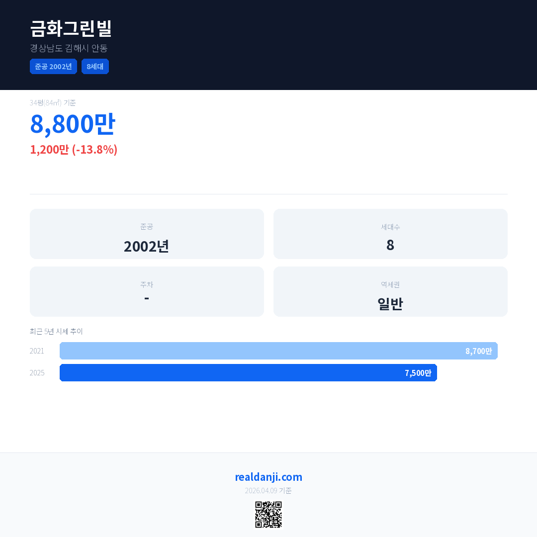 금화그린빌 최근 거래가는 8,800만입니다. (2025-04)