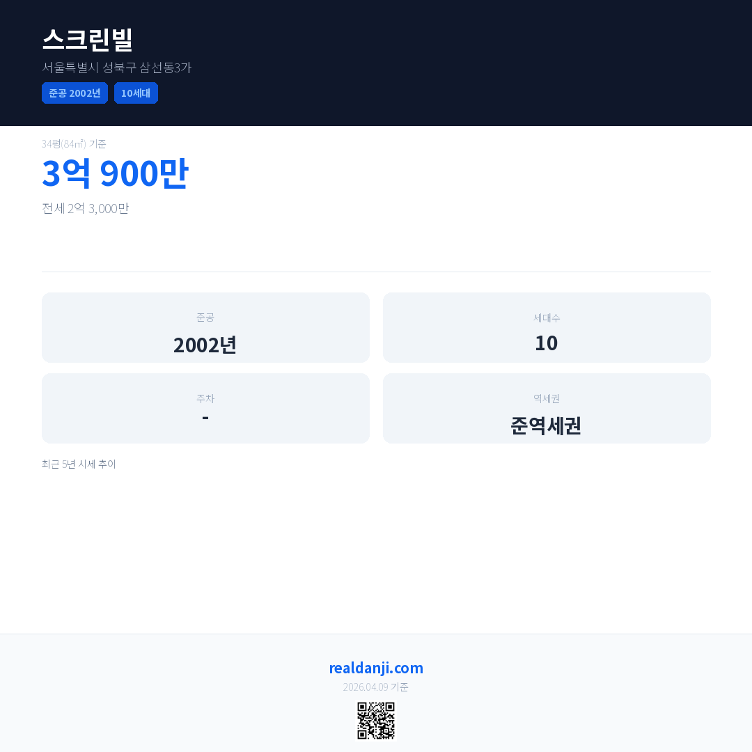 스크린빌 최근 거래가는 3억 900만입니다. (2020-04)