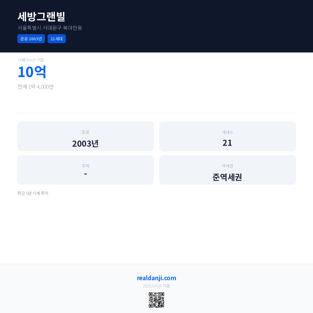 세방그랜빌 최근 거래가는 10억입니다. (2025-04)
