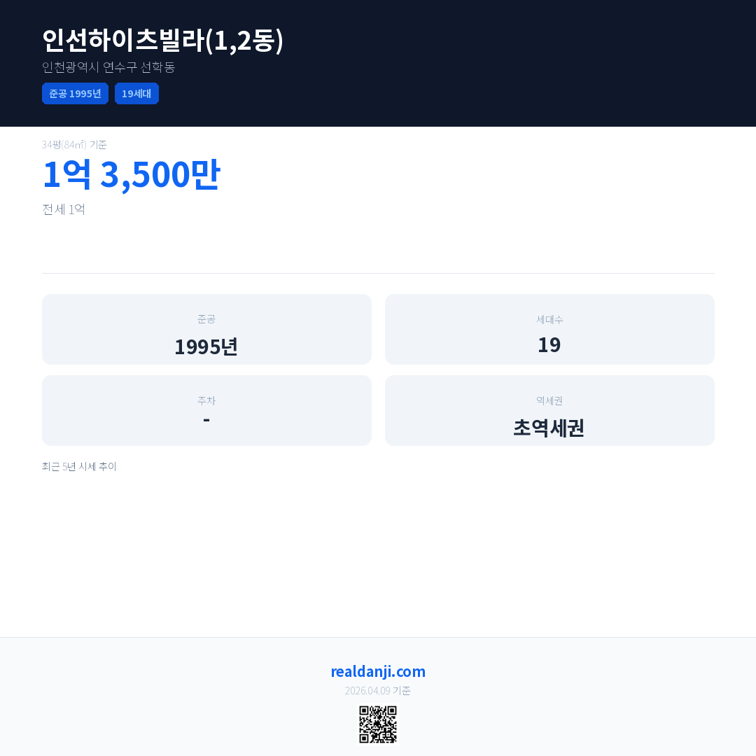 인선하이츠빌라(1,2동) 최근 거래가는 1억 3,500만입니다. (2024-04)
