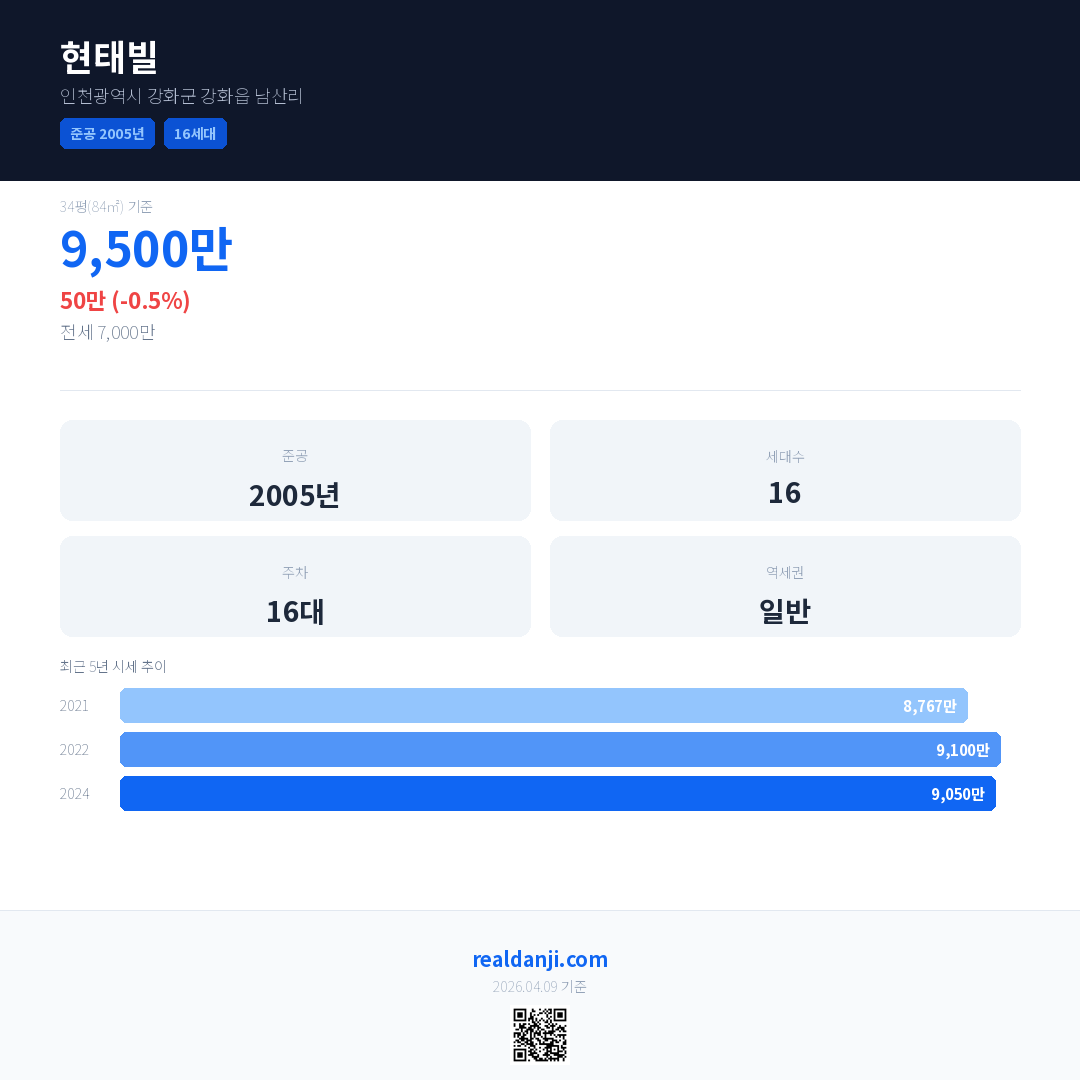 현태빌 최근 거래가는 9,500만입니다. (2024-05)