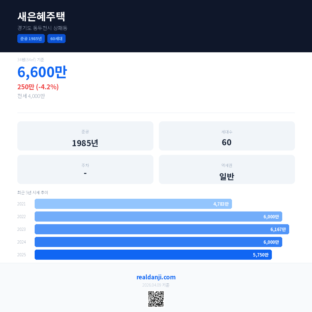 새은혜주택 최근 거래가는 6,600만입니다. (2025-10)
