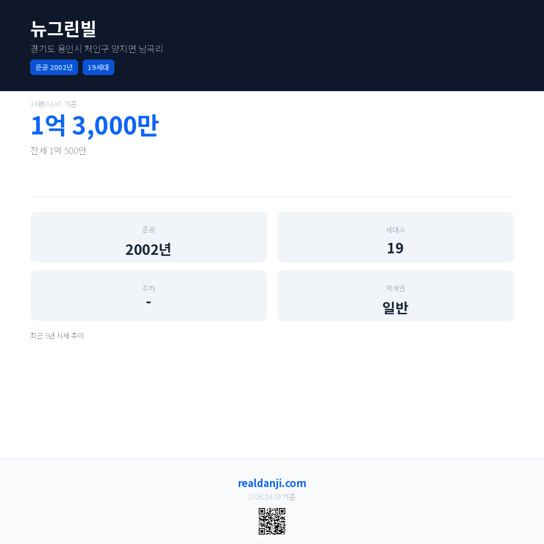 뉴그린빌 최근 거래가는 1억 3,000만입니다. (2019-12)