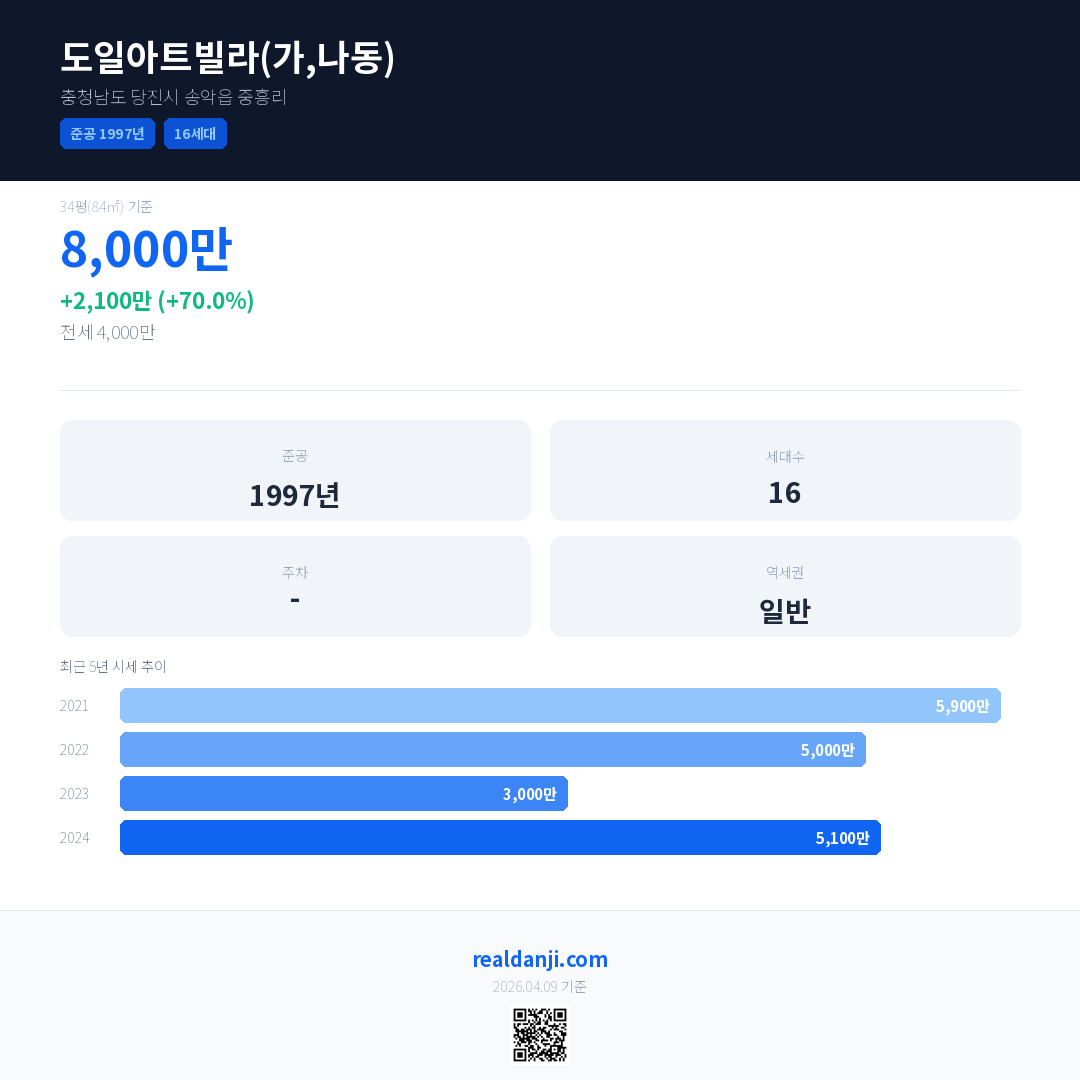 도일아트빌라(가,나동) 최근 거래가는 8,000만입니다. (2024-11)