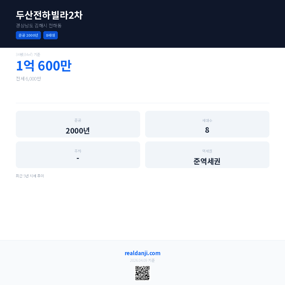 두산전하빌라2차 최근 거래가는 1억 600만입니다. (2016-05)