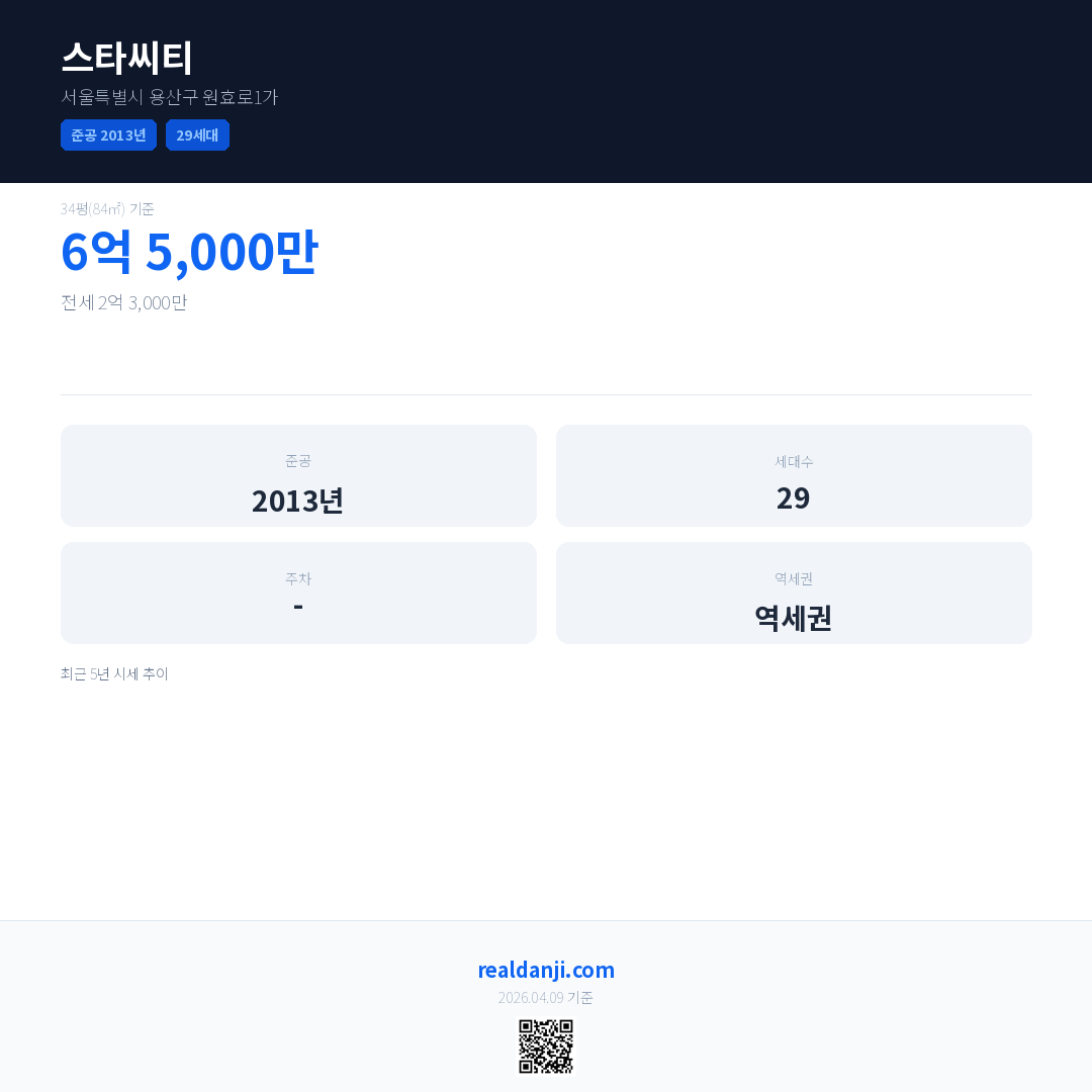 스타씨티 최근 거래가는 6억 5,000만입니다. (2022-06)