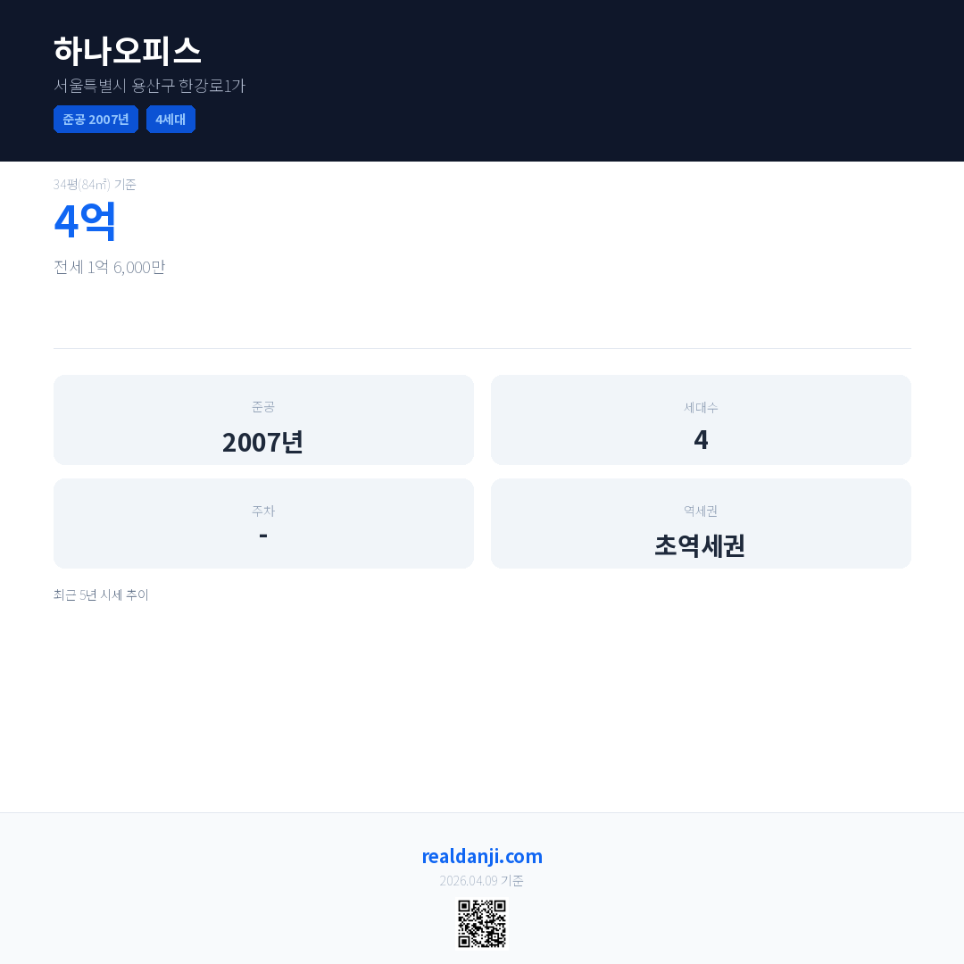 하나오피스 최근 거래가는 4억입니다. (2016-04)