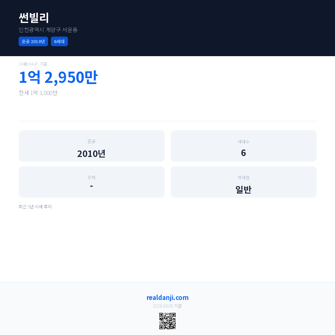썬빌리은(는) 2010년에 준공되었으며, 현재 16년차입니다. 총 6세대 규모입니다.