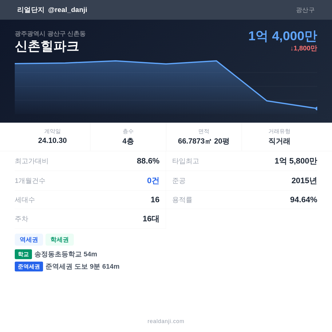 신촌힐파크은(는) 2015년에 준공되었으며, 현재 11년차입니다. 총 16세대 규모입니다.