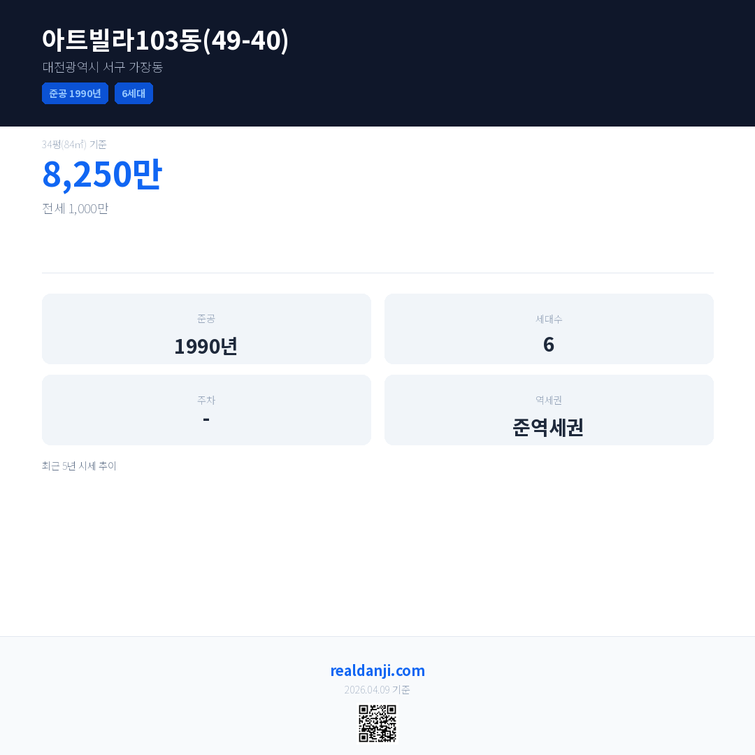 아트빌라103동(49-40) 최근 거래가는 8,250만입니다. (2019-04)